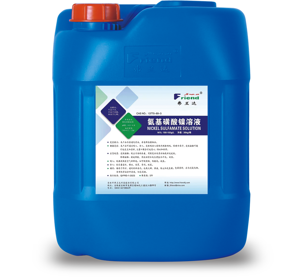 吉林市弗蘭達科技股份有限公司成立于2004年,位于吉林省吉林市龍?zhí)督?jīng)濟開發(fā)區(qū)精細化工園漢江路99號,注冊資本1000萬元,占地2萬平方米。專業(yè)從事醋酸鎳、氨基磺酸鎳、堿式碳酸鎳、氨基磺酸鈷等系列產(chǎn)品的研發(fā)與生產(chǎn)。產(chǎn)品均通過歐盟Reach和Rohs認證,生產(chǎn)制造過程通過了ISO9001質(zhì)量管理和ISO14001環(huán)境管理體系認證,擁有自主進出口經(jīng)營權(quán)。本著追求卓越、回報社會的企業(yè)宗旨,本著誠信擔當、品質(zhì)卓越、激情創(chuàng)新、和諧共贏的核心價值觀,為客戶提供優(yōu)質(zhì)服務,做行業(yè)知名品牌。產(chǎn)品主要應用領(lǐng)域:鋁合金陽極氧化、著色、封閉劑行業(yè);精密電鍍、電子電鍍行業(yè);石油化工、機械行業(yè)的催化劑制造、電鍍主鹽等。